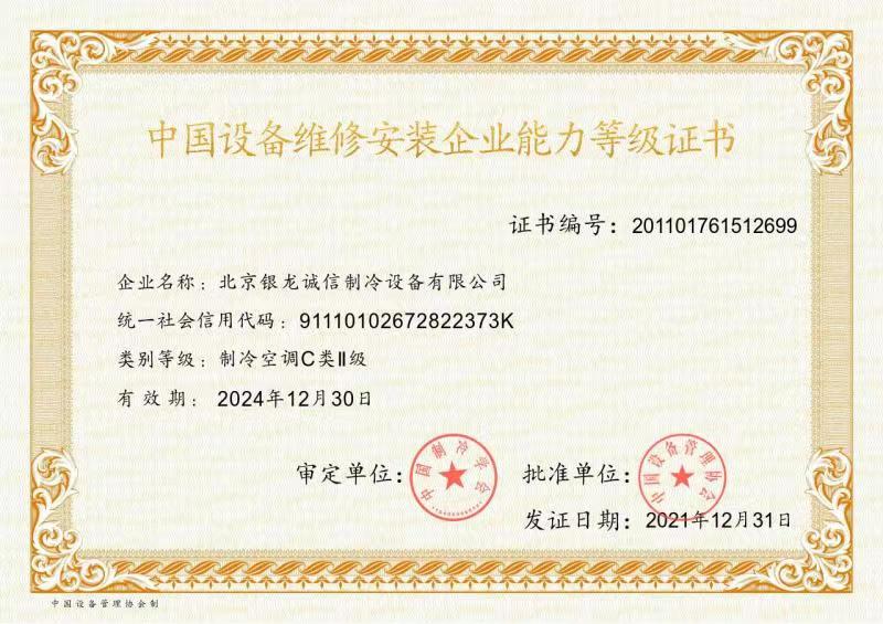 2007年:獲準(zhǔn)成為北京市制冷行業(yè)技術(shù)學(xué)會理事單位; 2009年:獲得北京市大興區(qū)百強(qiáng)企業(yè)認(rèn)證; 2009年:獲得國家高新技術(shù)企業(yè)認(rèn)證; 2011年:獲北京市安全生產(chǎn)先進(jìn)企業(yè)稱號,節(jié)能環(huán)保先進(jìn)單位; 2012年:通過了國家高新技術(shù)企業(yè)復(fù)審; 2013年:公司董事長獲"2013北京先進(jìn)企業(yè)家"榮譽(yù)稱號; 2014年:獲2014年度中國冷庫工程安裝設(shè)計造價行業(yè)十大品牌;